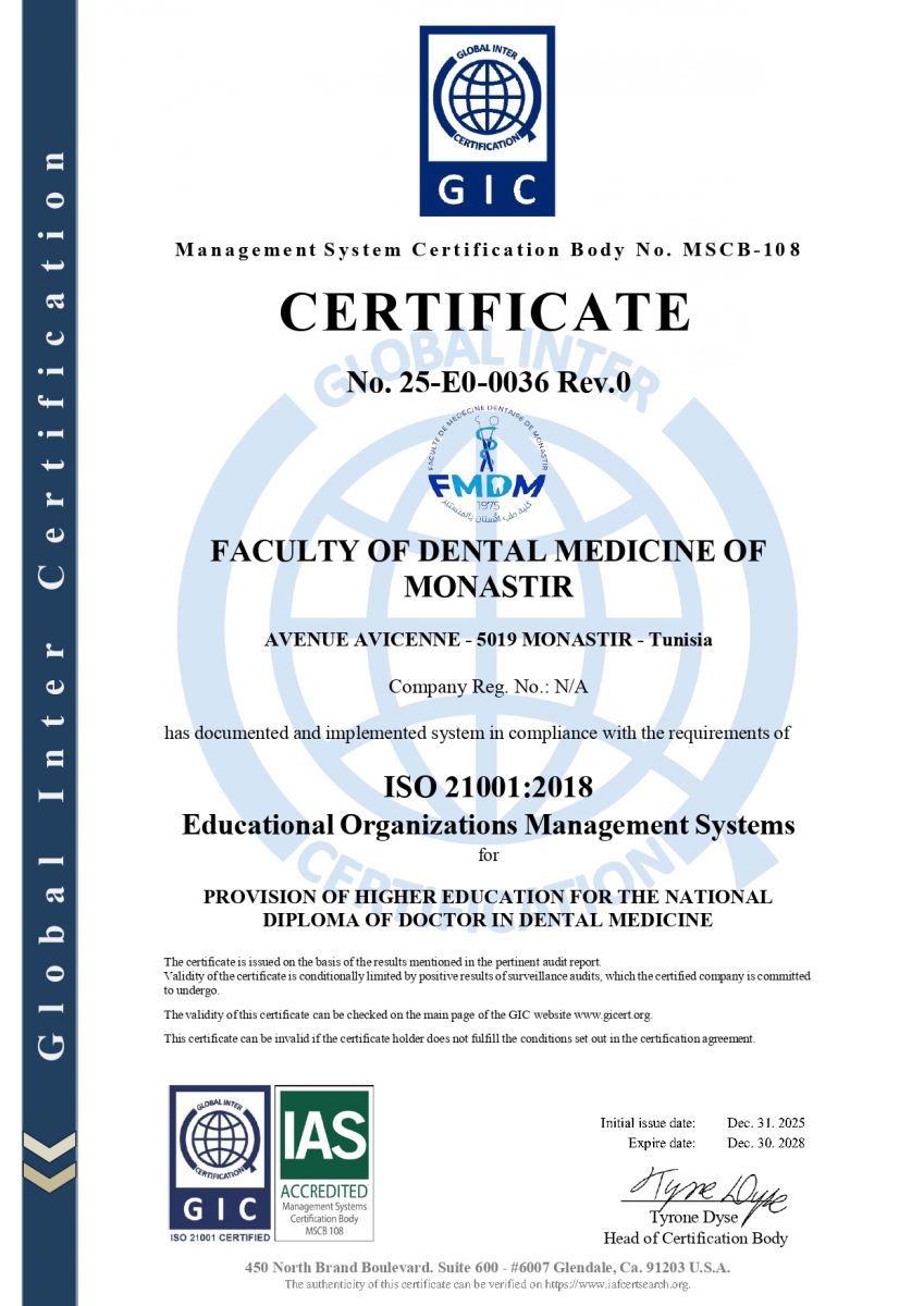 FMDM est un établissement public rattaché à l'université de Monastir